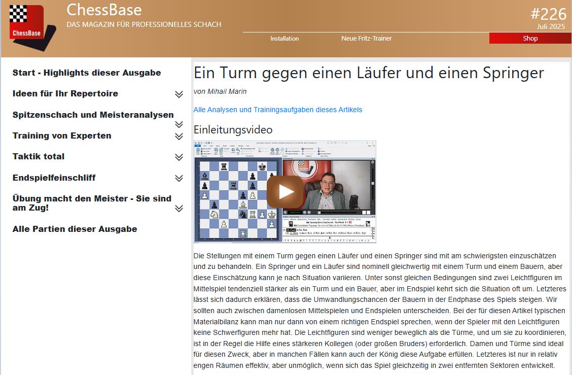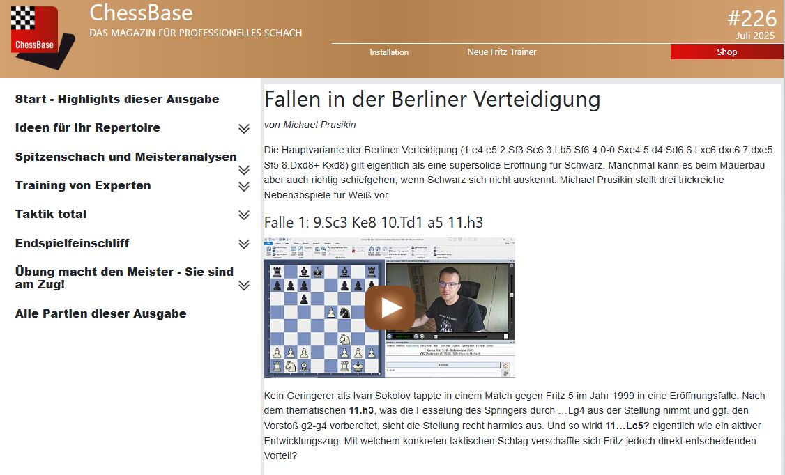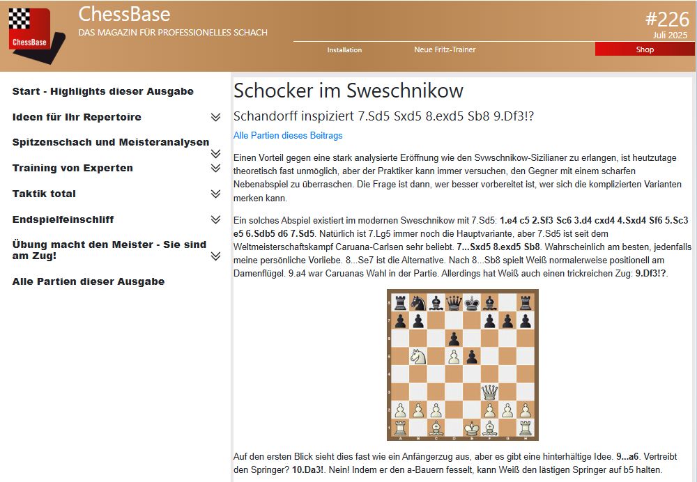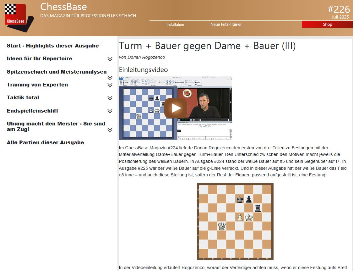 Von der Europameisterschaft 2025 über Luis Engels Eröffnungsvideo zu Najdorf mit 6.Ld3 und den neuen Praxistipp „Vereinfachung“ von Jan Markos und Oliver Reehs Taktikbeitrag "Damenopfer mit Dividende" bis zu Dr. Karsten Müllers Videoreihe "Endspiel Basiswissen".