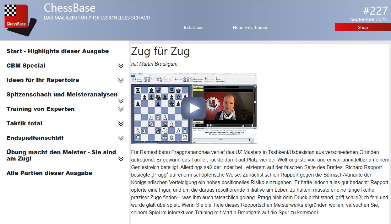 Im Lieferumfang enthalten: CBM #227 als „ChessBase Book“ für iPad, Tablet, Mac etc.! Auf books.chessbase.com
