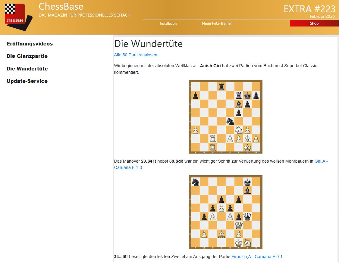 Das Extra #223 liefert in der „Wundertüte“ 50 kommentierte Partien aus verschiedensten Turnieren.