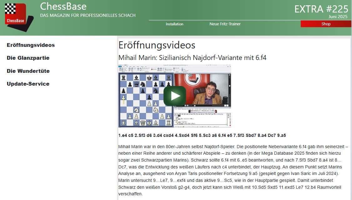 ChessBase Magazin Extra ist die perfekte Ergänzung zum ChessBase Magazin. Erhältlich als Einzelheft oder im Abonnement (6 Ausgaben pro Jahr). Erhältlich als direkter Download.