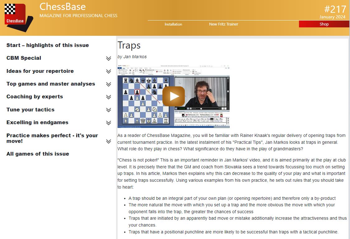 What role do traps play in chess? How important are they in the play of grandmasters? And what is important when setting traps successfully? Jan Markos works out four rules that you should follow in your own games. Video plus a small collection of exercises.