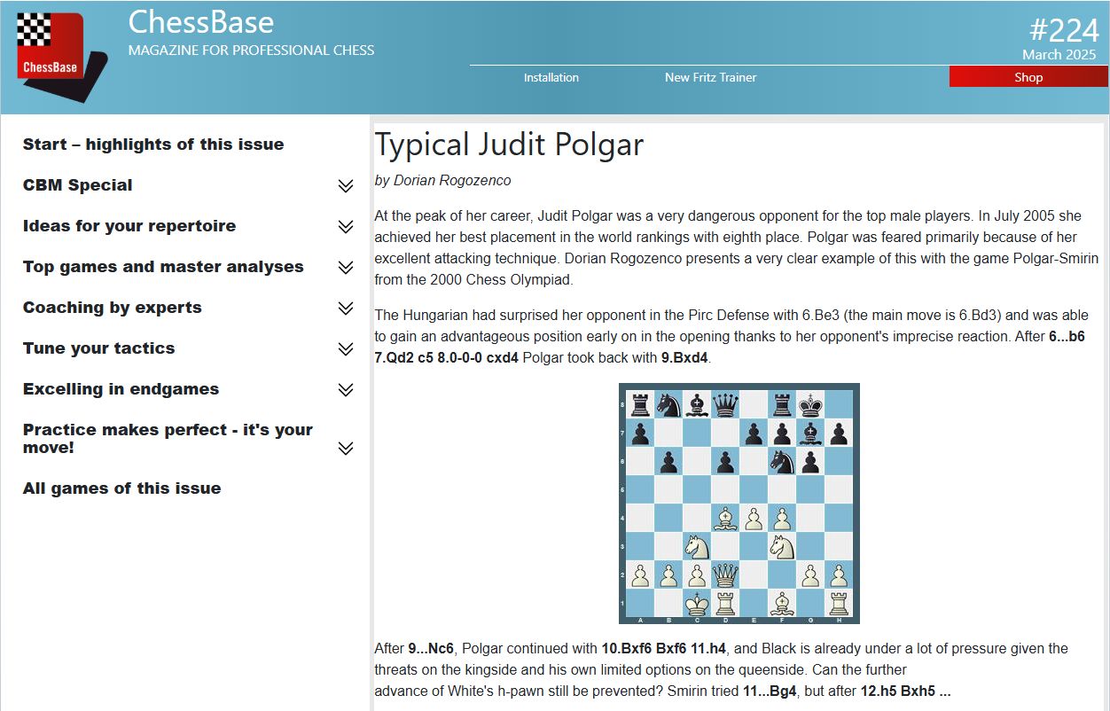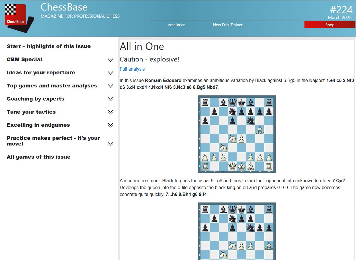 From the English Opening to the King's Indian - ChessBase Magazine #224 offers 10 opening articles with new ideas for every repertoire!