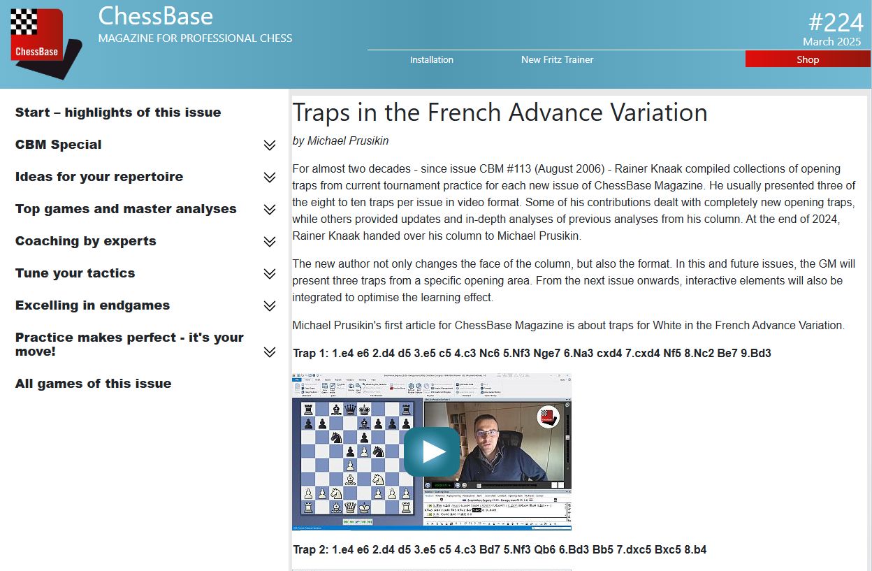 Our new author Michael Prusikin demonstrates three traps for White in the French Advance Variation in the video and also discusses strategic ideas in this opening.