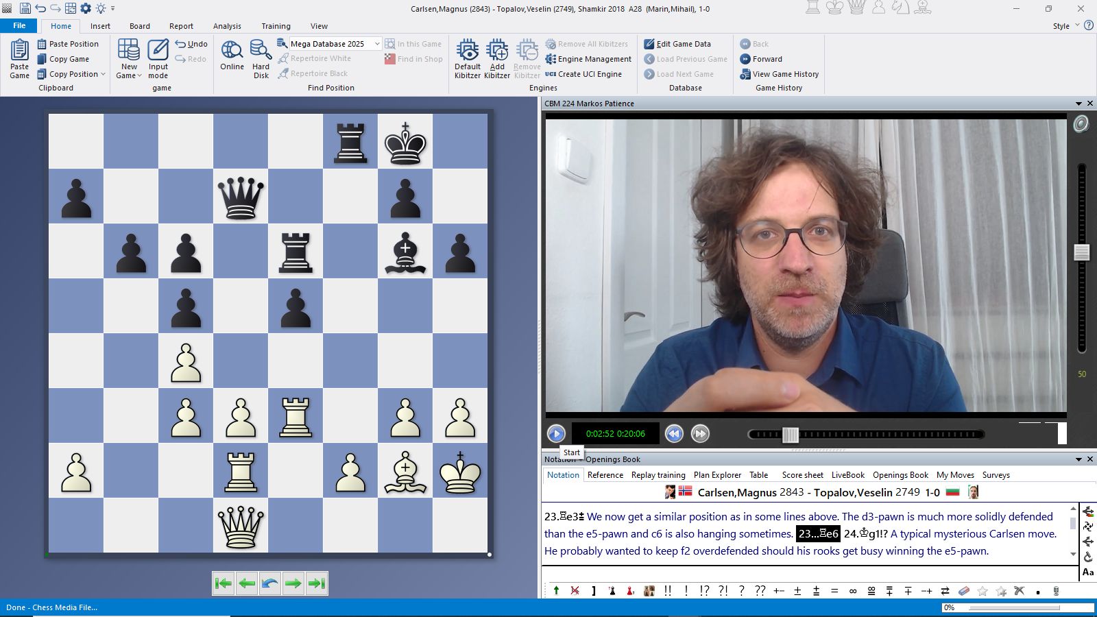 CBM authors (Berg, Edouard, Krasenkow, Markos, Pelletier et al.) comment on their favourite game. Exclusive collection of 24 games from 1960 to 2006. David Navara presents the King's Indian classic Kortschnoj - Nijboer in the video!