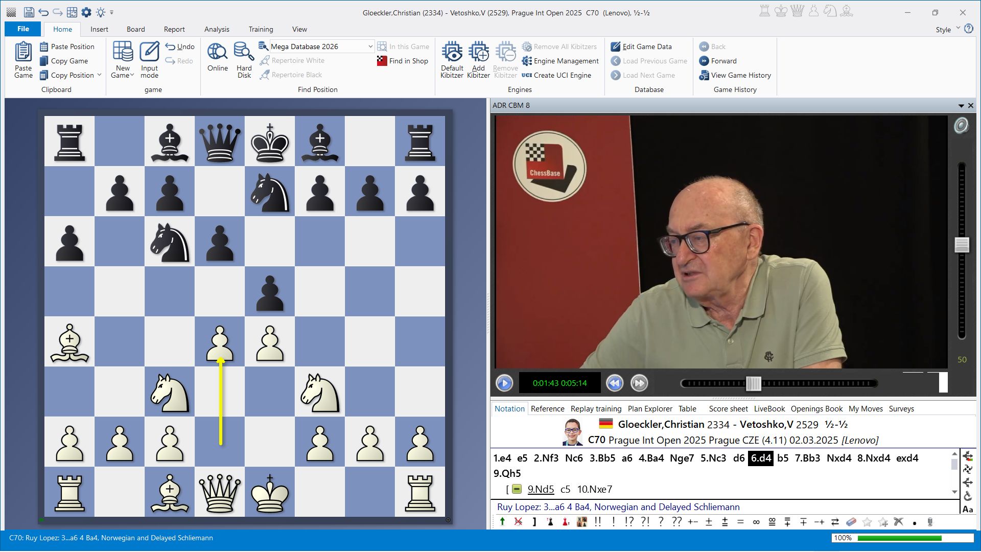‘Everybody nowadays sacrifices a pawn.’ The young German talent Christian Gloeckler did just that at the 2025 Prague Open against GM V. Vetoshko in the Spanish sideline with 4...Nge7. But is the sacrifice initiated by 6.d4 also sound? After 8...exd4, Mikhalchishin examines White's options 9.Nd5, 9.Qf3 and 9.Qh5 and finds that White gets at best some compensation for the pawn.